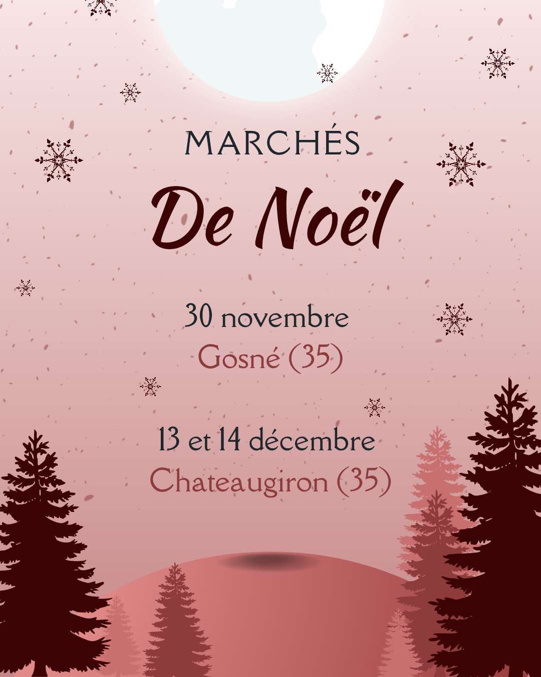 Je serai présente sur les marchés de Noël pour partager mes créations artisanales et vous aider à trouver LE cadeau unique qui fera briller les yeux de vos proches.