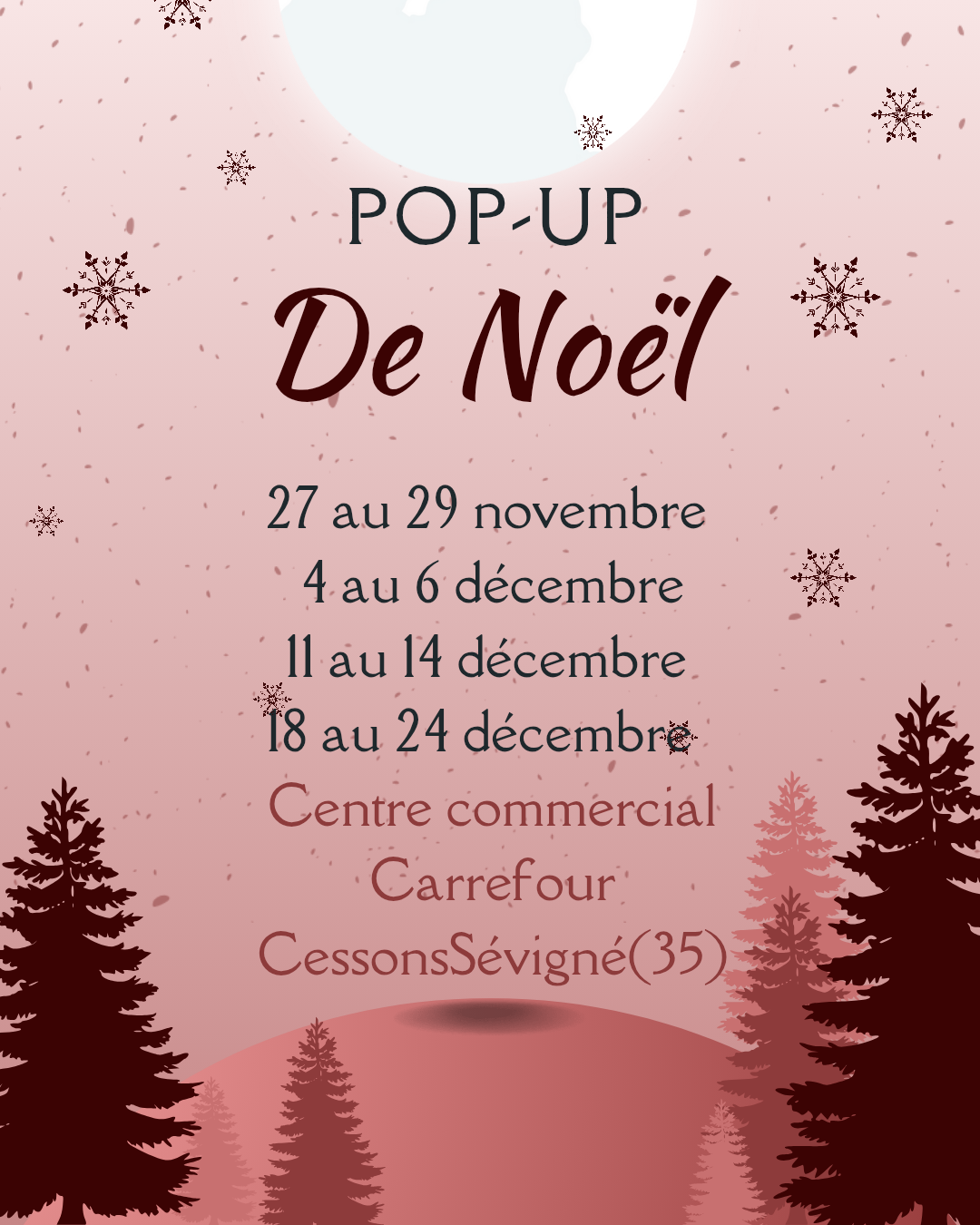 Vous pourrez également nous retrouver lors de notre Pop-up de Noël dans la galerie commerciale de Carrefour Cesson Sévigné avec 2 autres créatrices afin de vous conseiller pour glisser du fait-main sous votre sapin ! Des créations artisanales, locales qui raviveront les personnes que vous aimez.