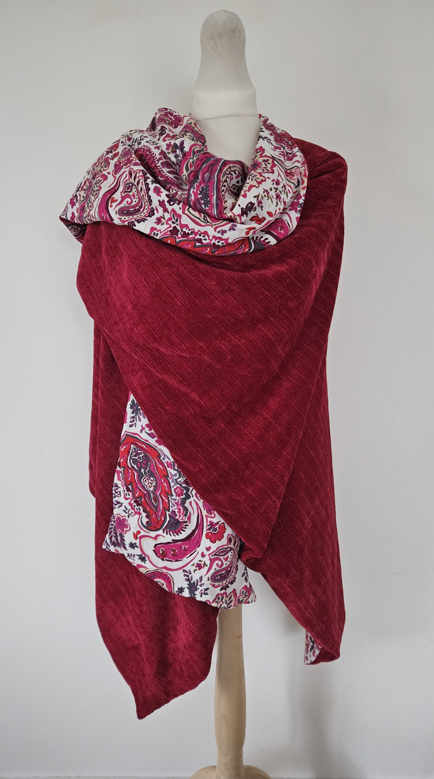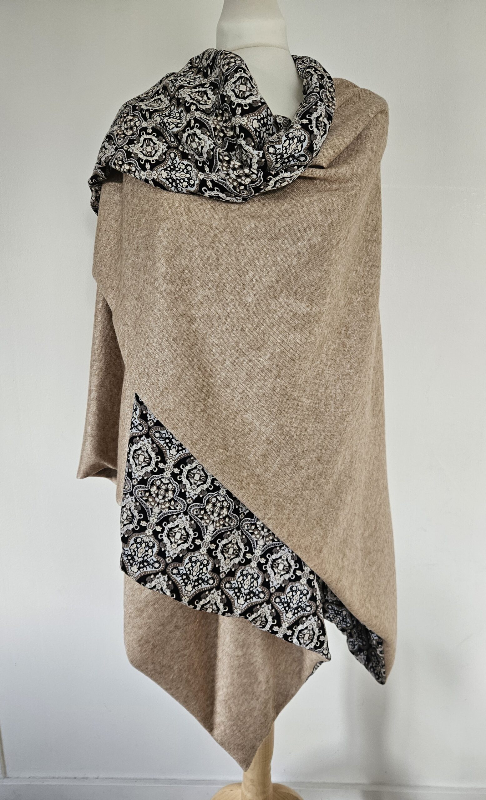 Cape en maille beige chiné et viscose.