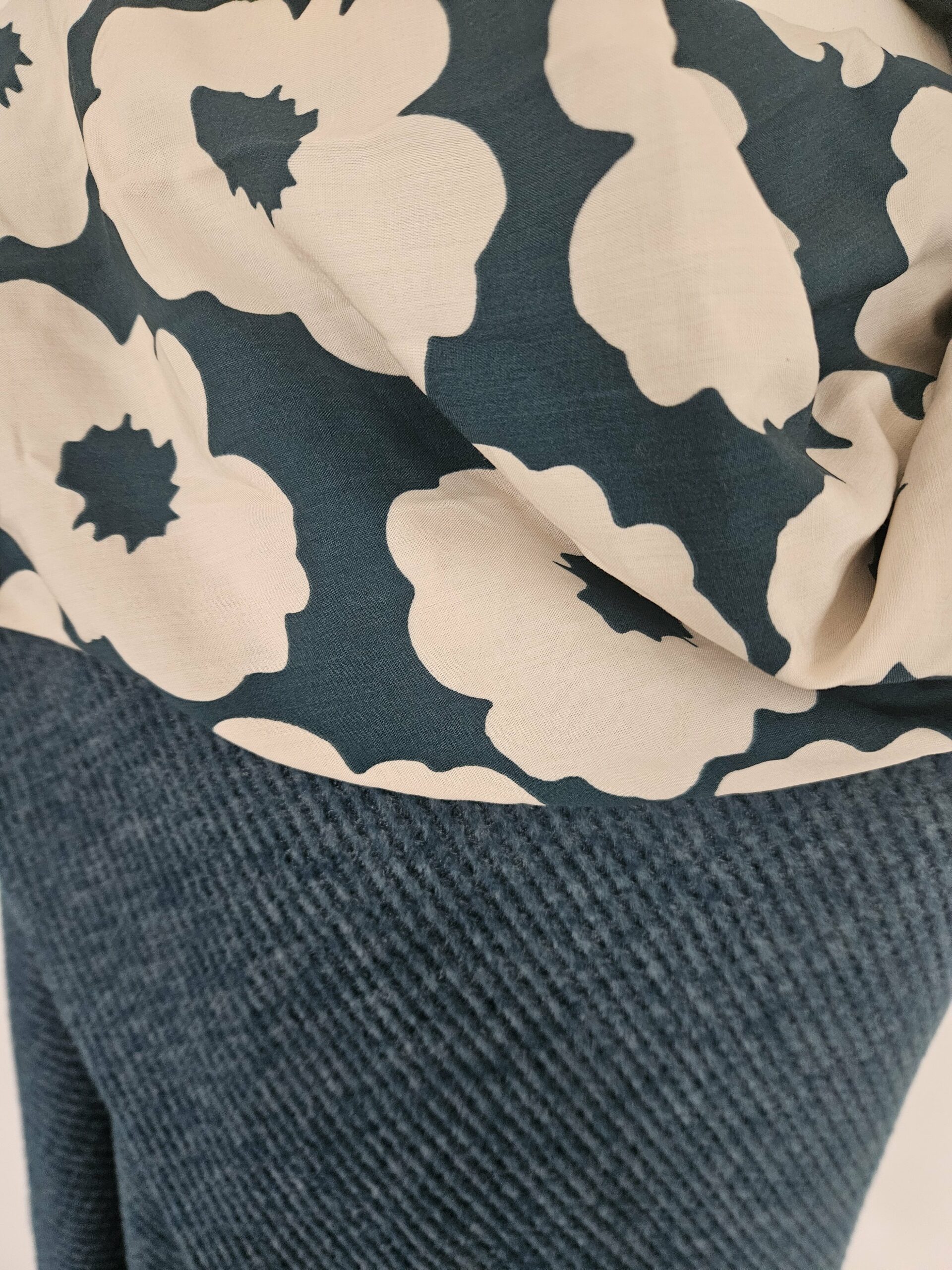 Cape en maille vert canard et viscose écrue et vert canard