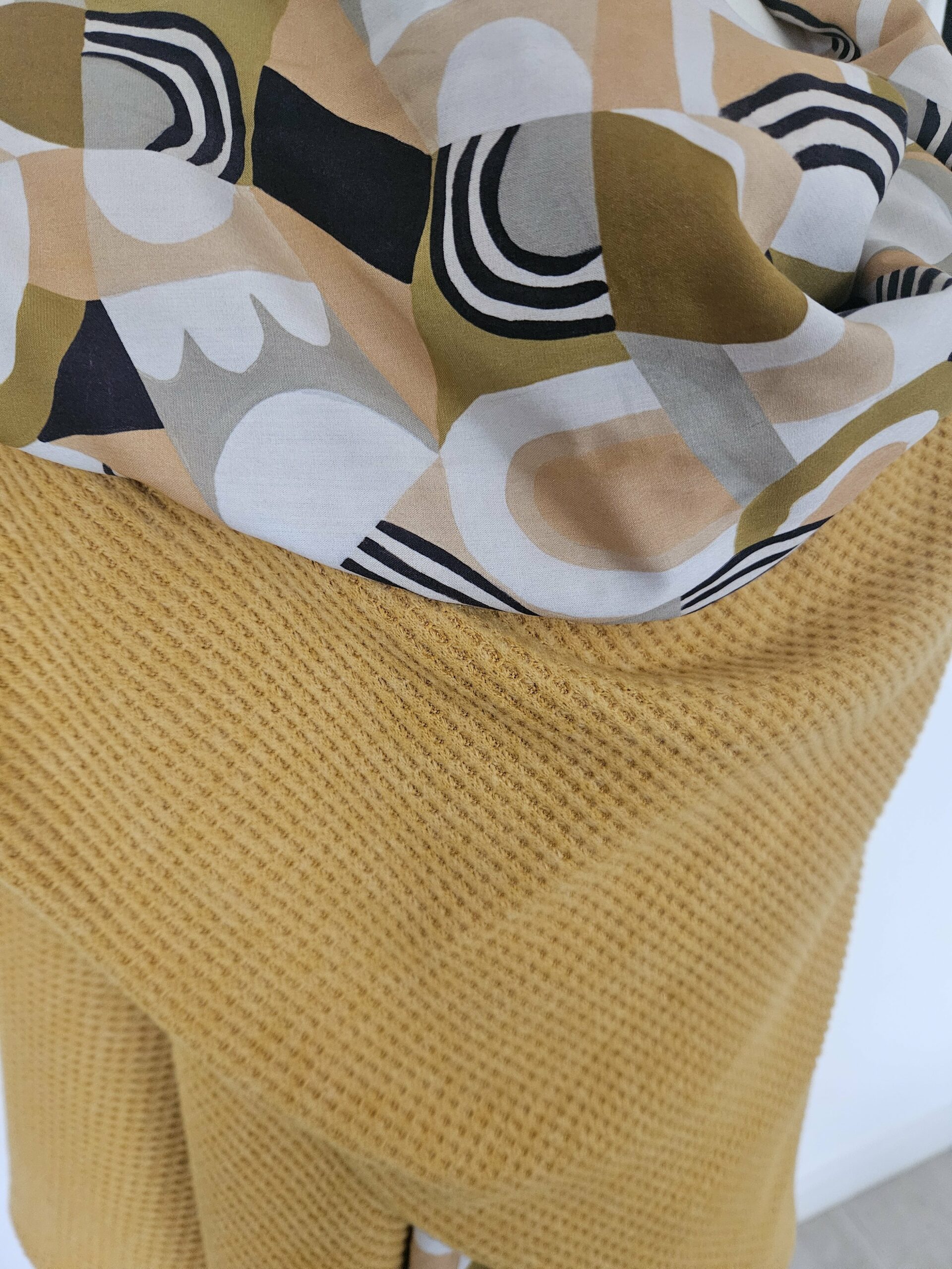 Cape en maille jaune et viscose imprimée