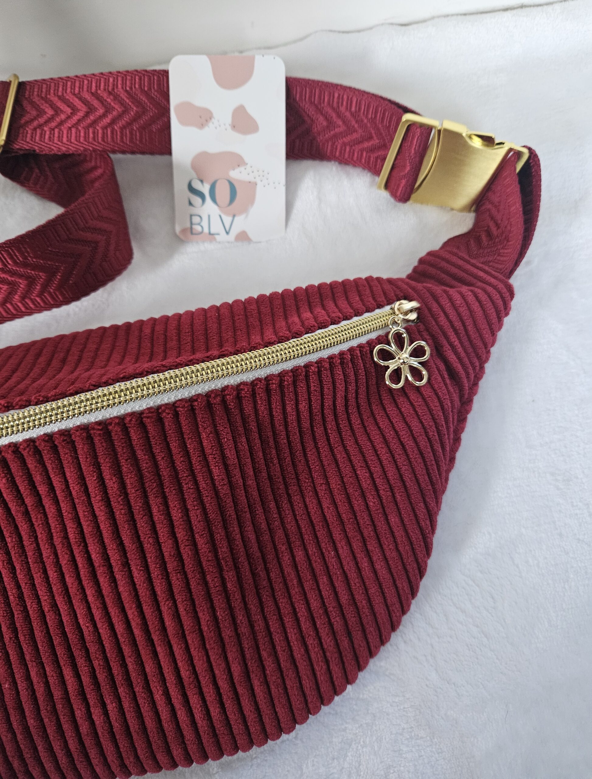 Sac banane en velours côtelé bordeaux / doublé coton.