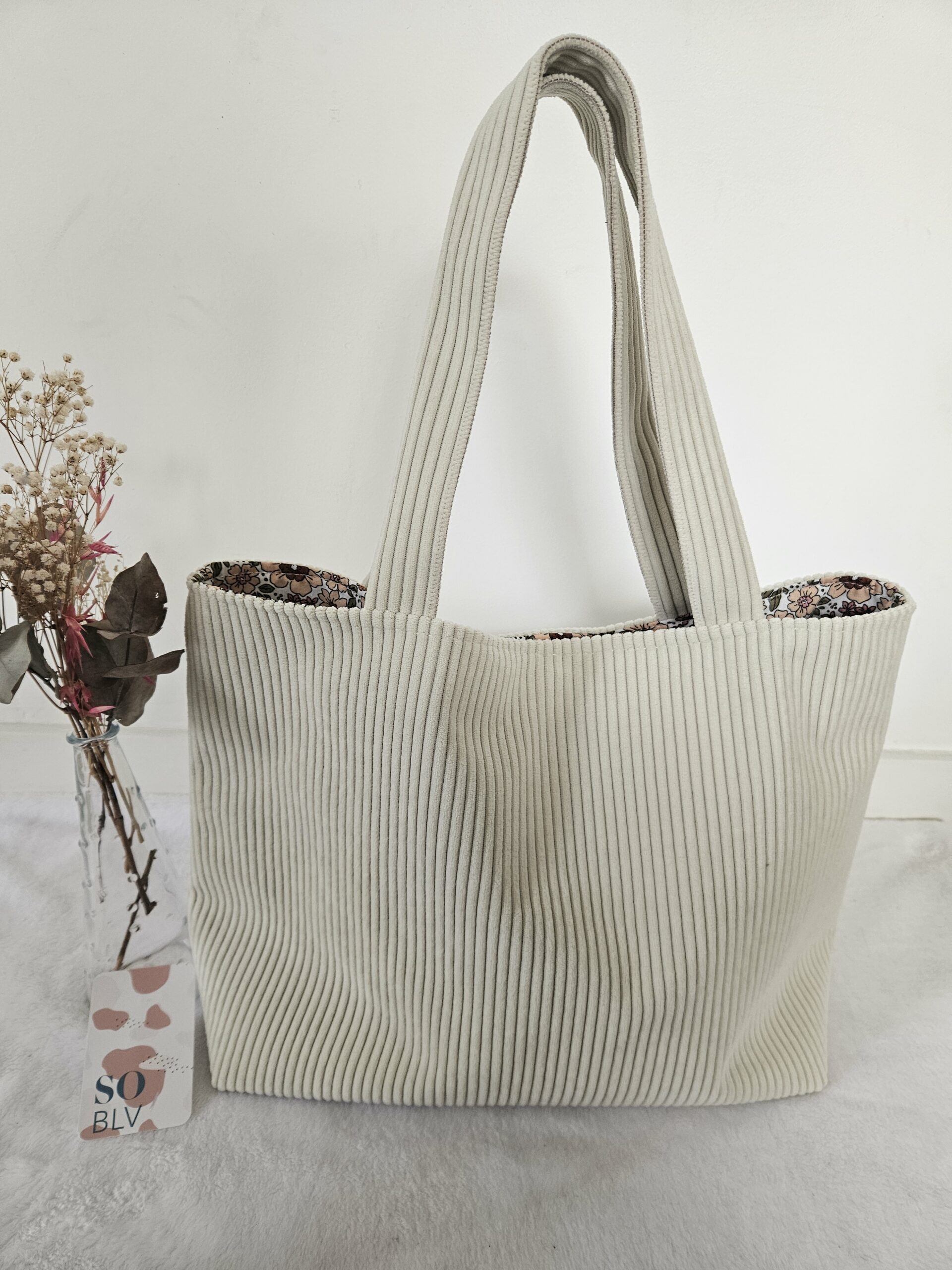 Sac Cabas en velours côtelé kaki intérieur coton.