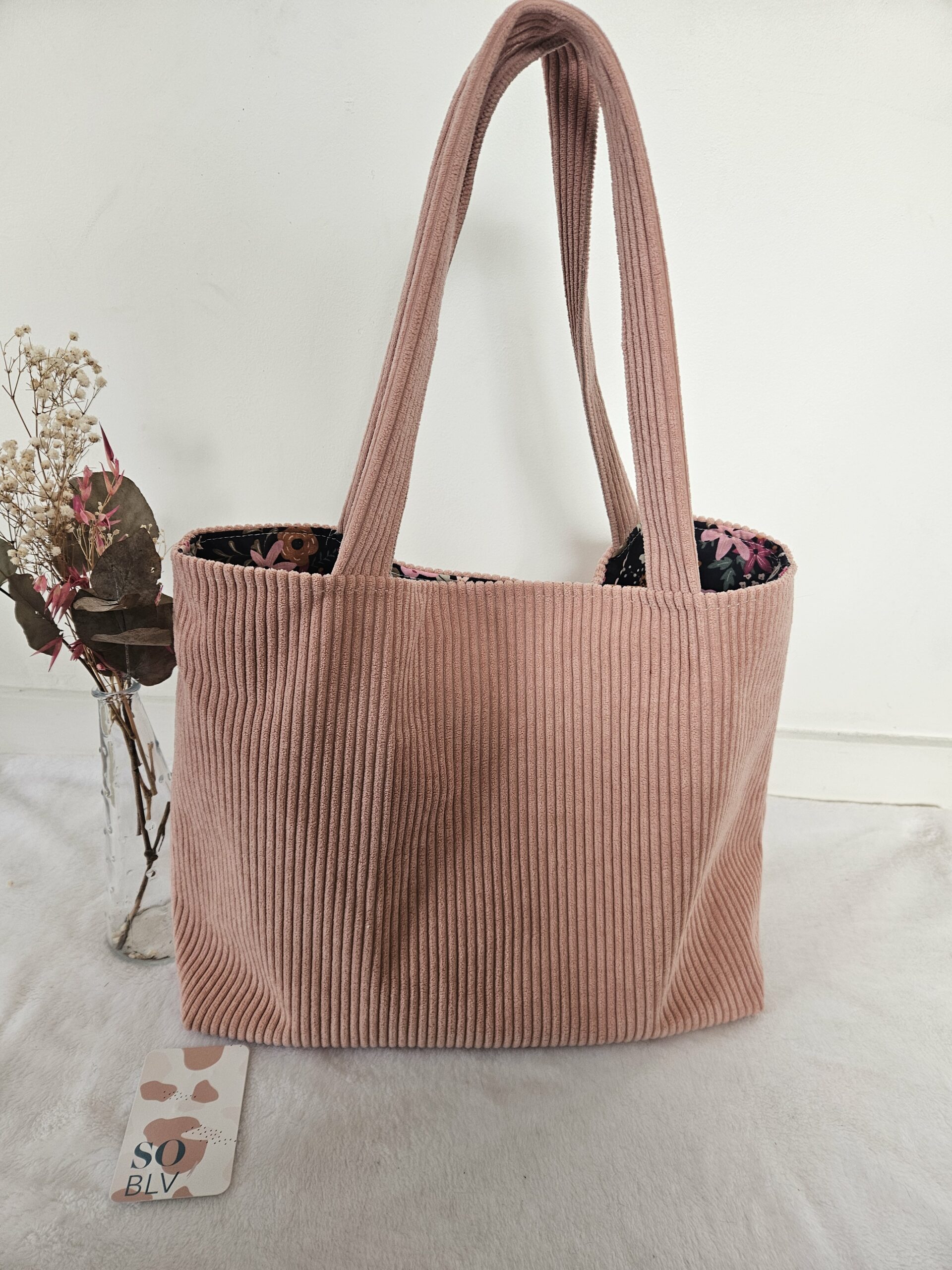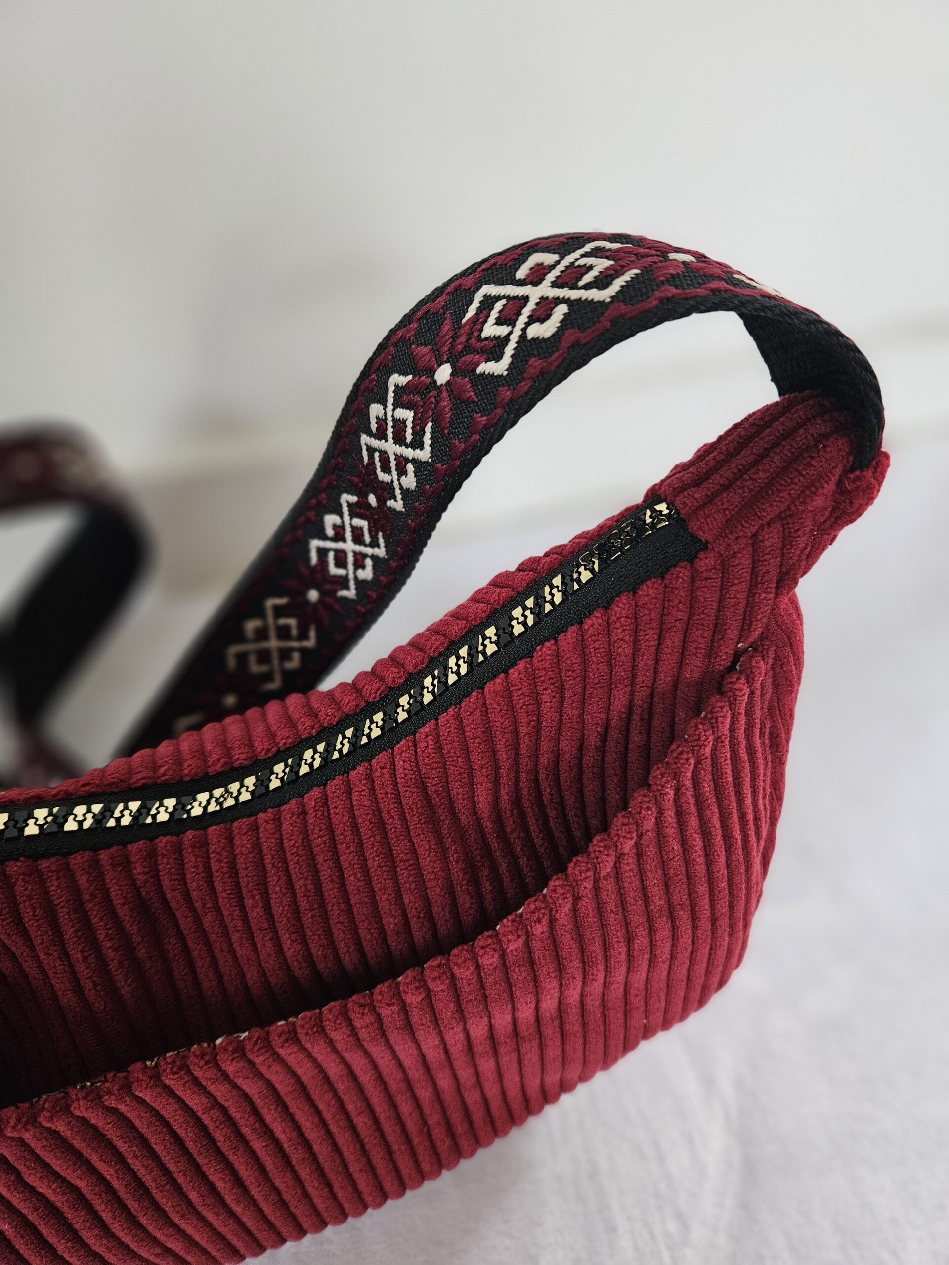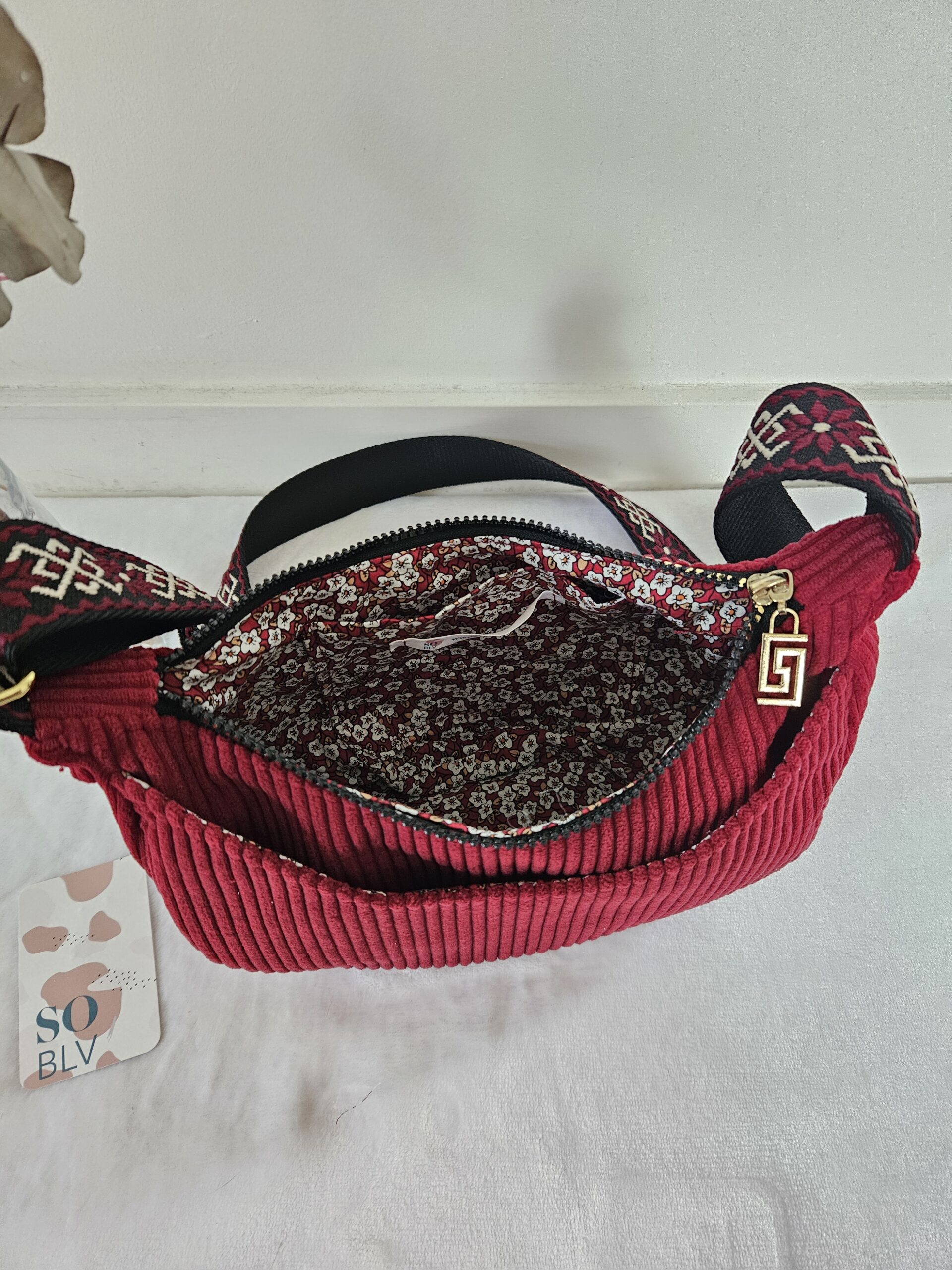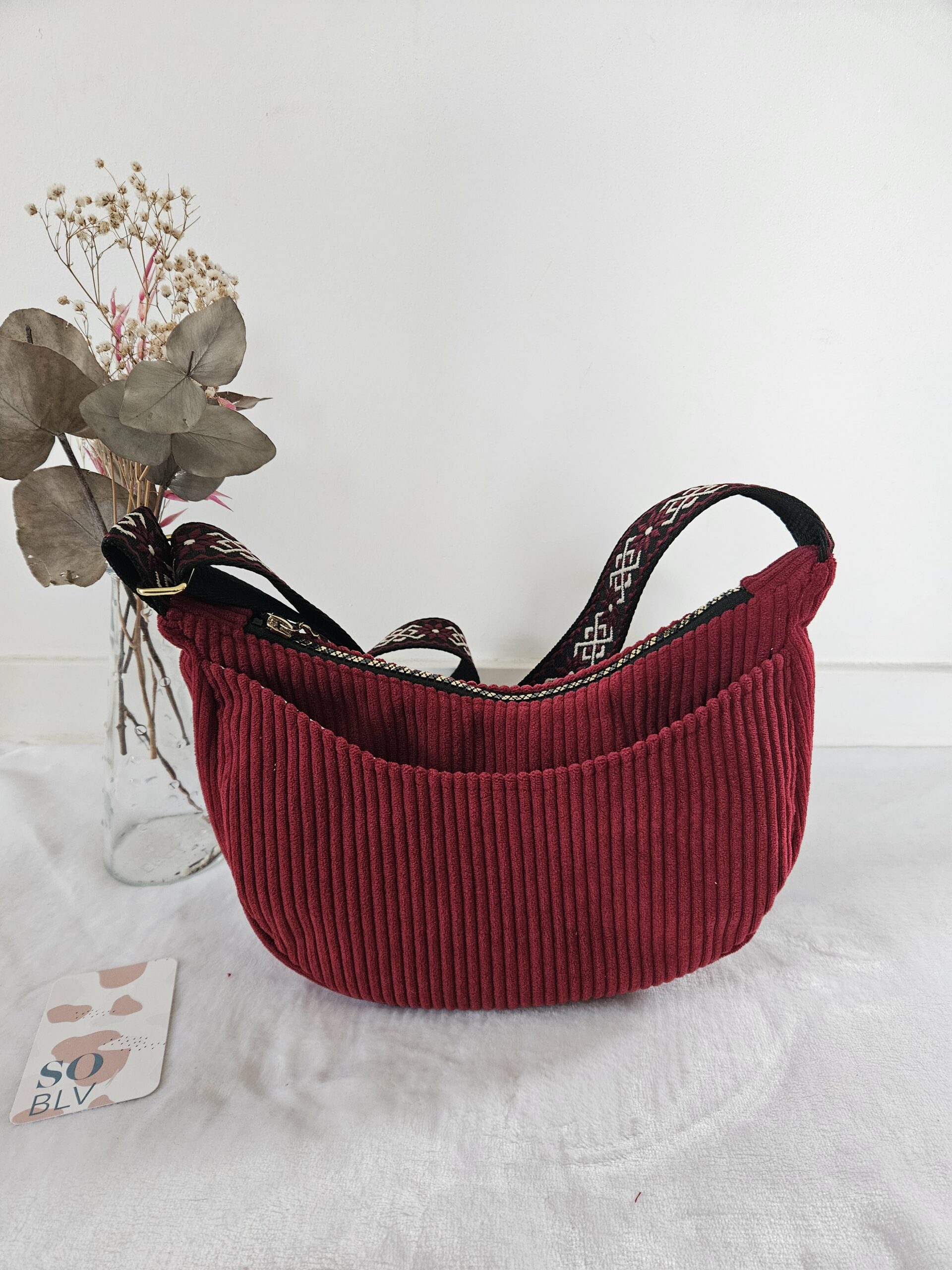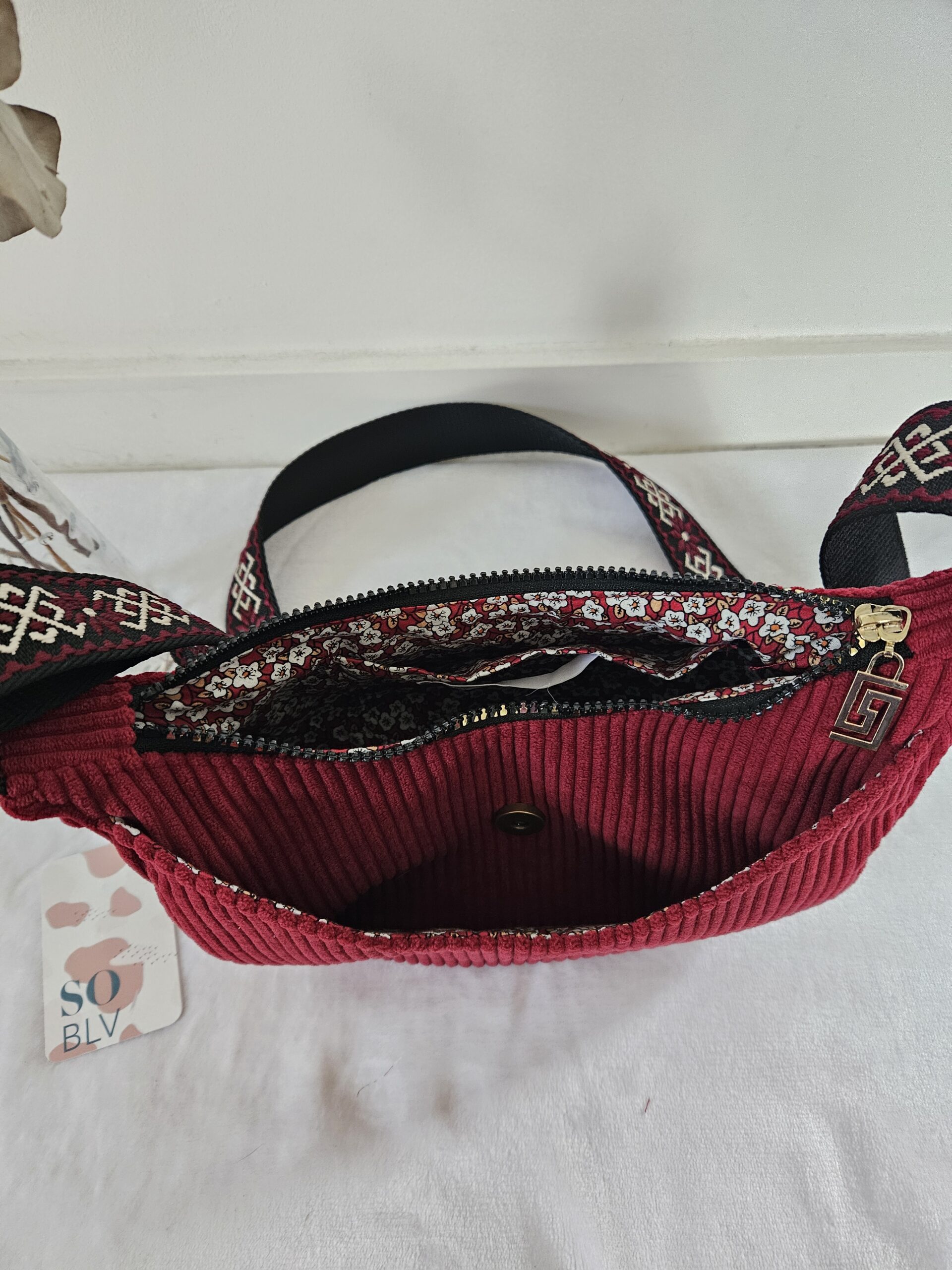 Sac Diane en velours côtelé rouge intérieur coton fleuri